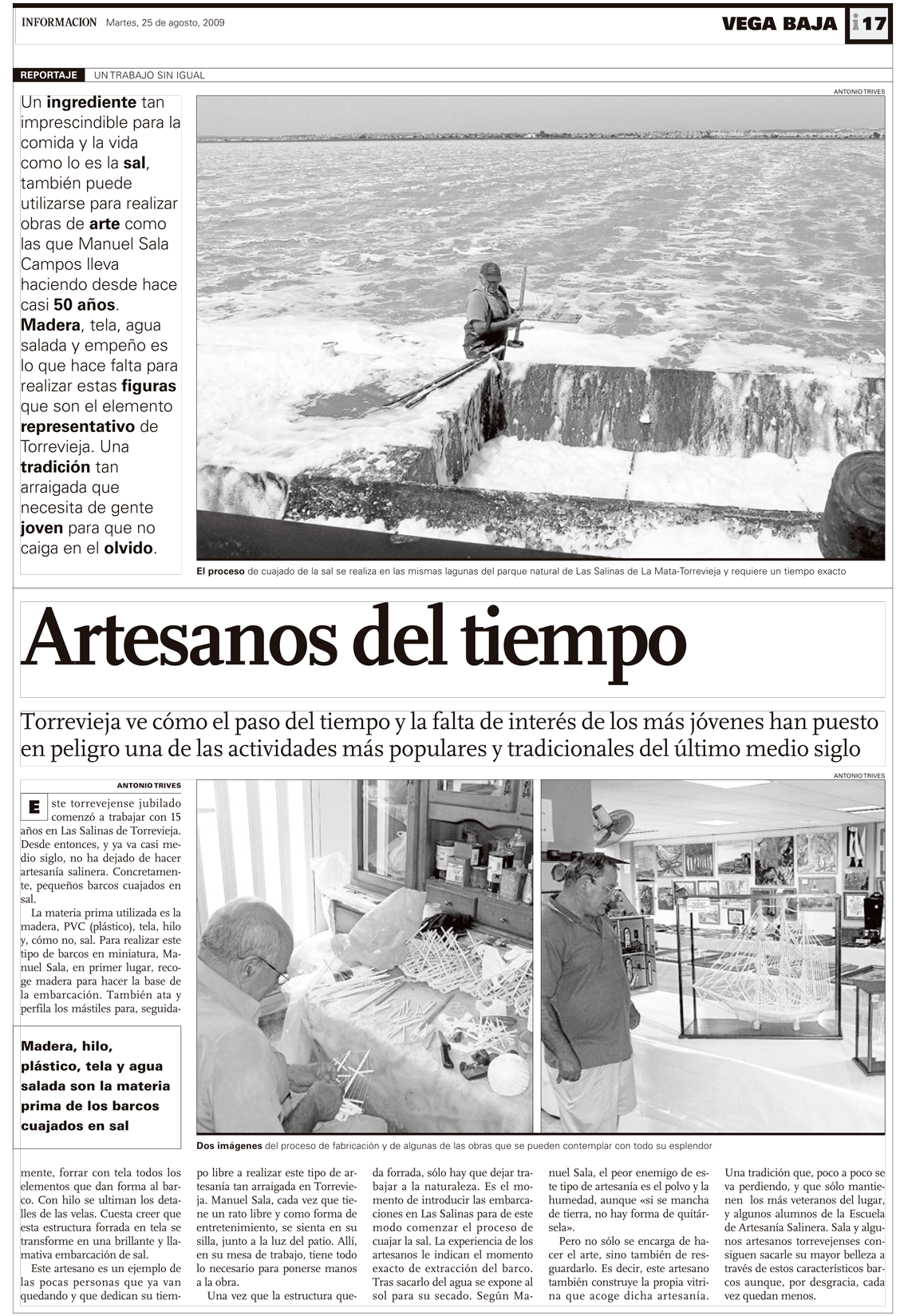 Contenido: artesano que emplea la salinidad del agua de las salinas de Torrevieja para la elaboración de barcos decorativos.