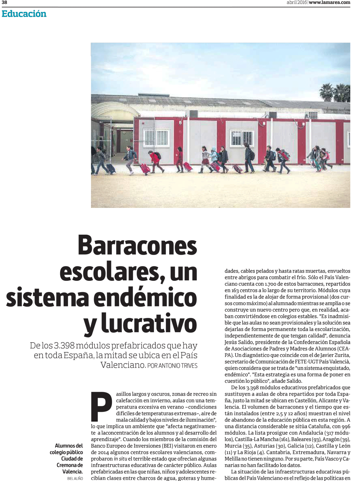 Contenido: el negocio de las aulas prefabricadas en los colegios e institutos públicos en España y su distribución en cada una de las comunidades autónomas.