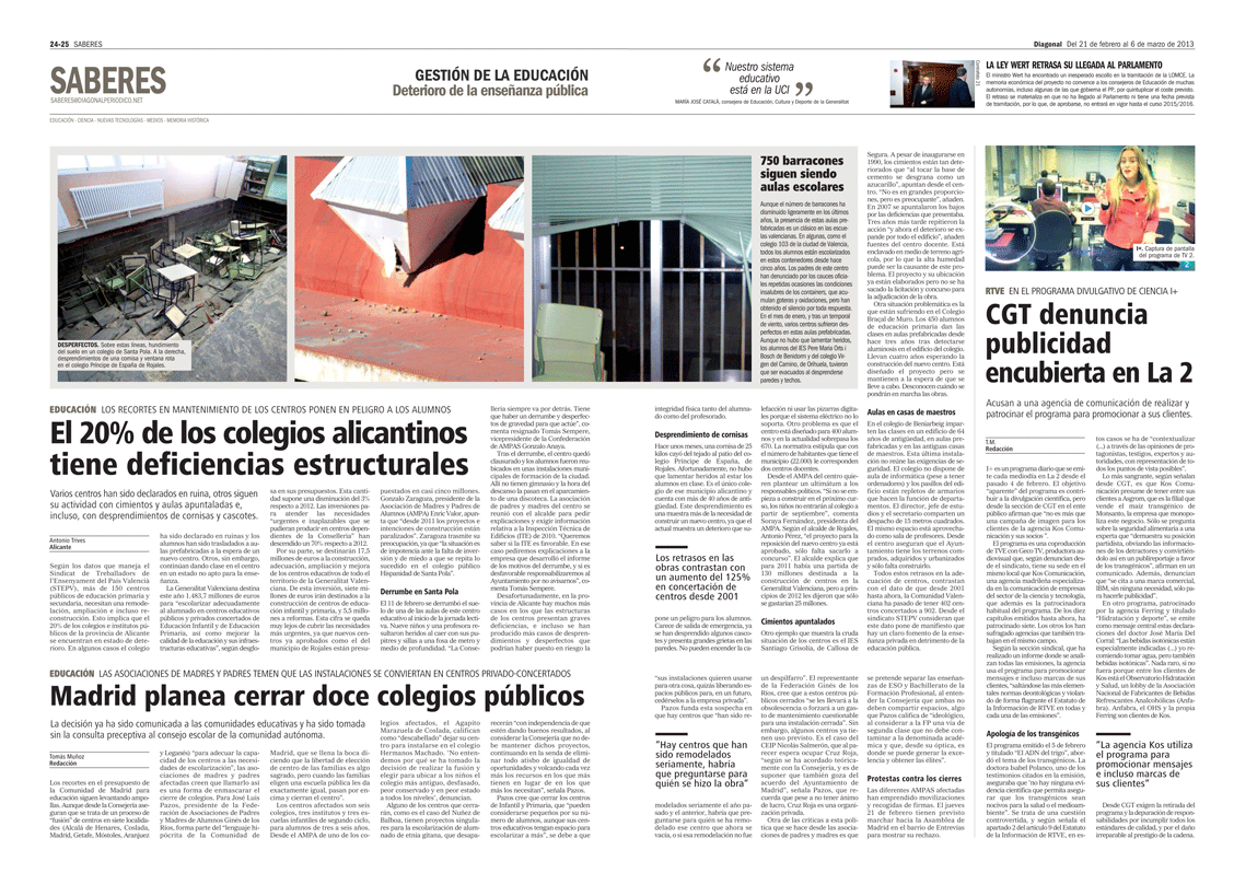 Contenido: las deficiencias estructurales de los colegios alicantinos y las condiciones en las que los alumnos dan clase.