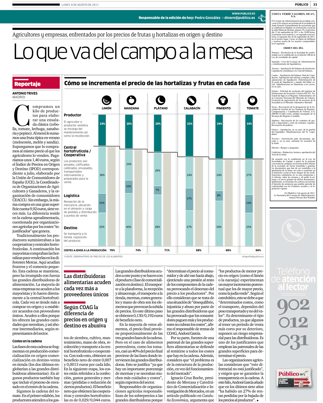 Contenido: la diferencia de precios al consumir productos agrícolas comprados al agricultor y en las grandes superficies. ¿qué hace que incremente el precio?