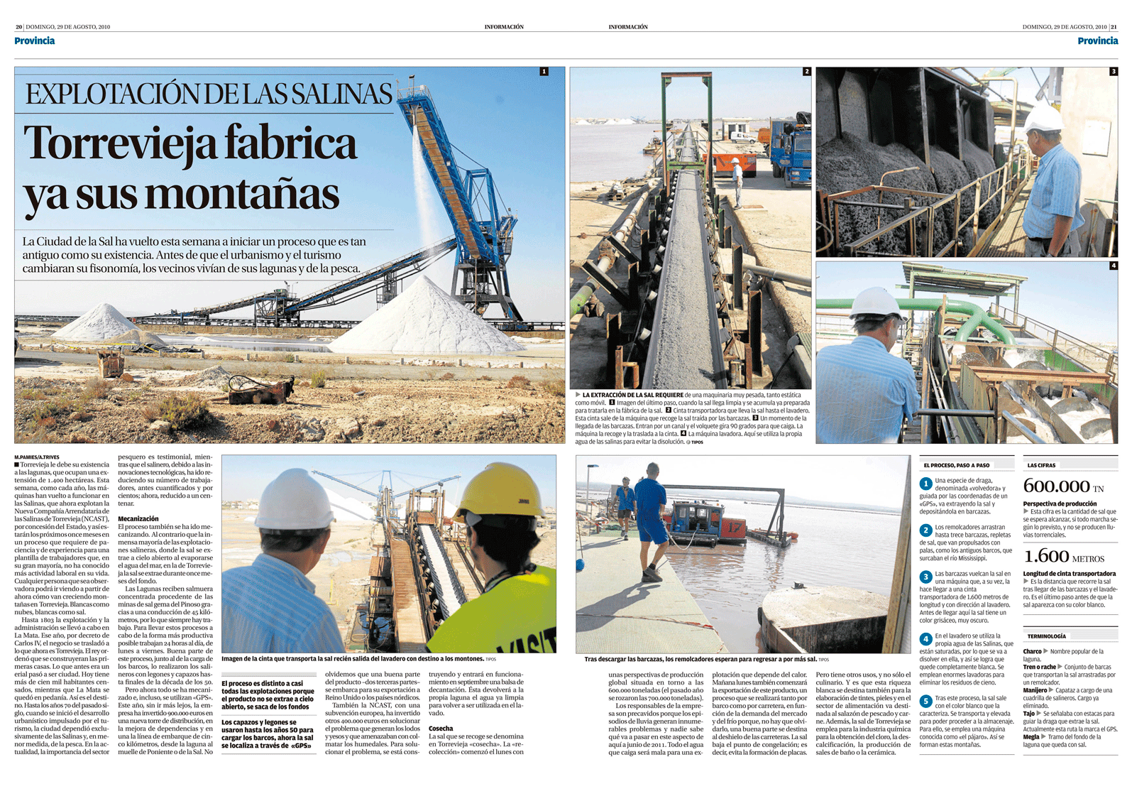 Contenido: el proceso de extracción de la sal de las lagunas de Torrevieja (España).