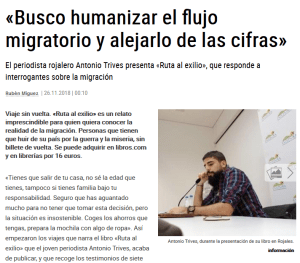 «Ruta al exilio-El camino de refugiados de Oriente Medio a Europa» (Editorial Libros.com) en los medios de comunicación.